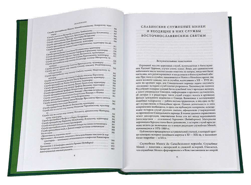 Книга содержит информацию о более чем 110 службах русским святым, утвержденных Синодом в XVIII–XX вв. История служб прослежена вплоть до их включения в служебные Минеи, изданные в 1978–1988 гг. На основе материалов архива Святейшего Синода описана цензурная история текстов, установлены авторы служб, выявлен круг лиц, участвовавших в редактировании и обсуждении. Сведения об исправлении служб во второй половине XX в. приводятся на основе архива рабочей группы, которая готовила новую версию служебных Миней. Книга предваряется очерком, посвященном истории минейных служб в русской книжной традиции. Основой книги стали материалы иером. Германа (Вейнберга) (1885–1942), собранные им во время учебы в СПбДА и защищенные в 1916 г. в качестве диссертации. Публикуемые материалы являются источниковедческой базой для изучения русского литургического творчества Нового и Новейшего времени и истории церковнославянского языка.