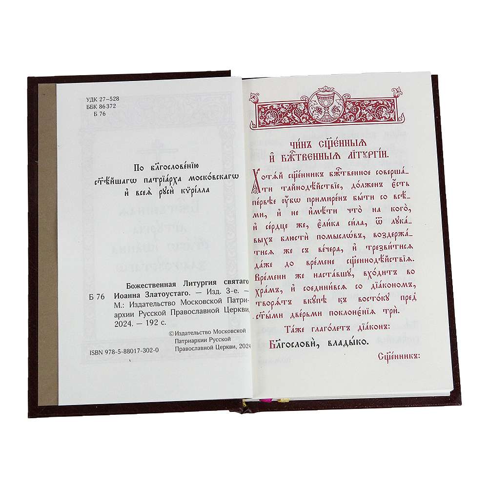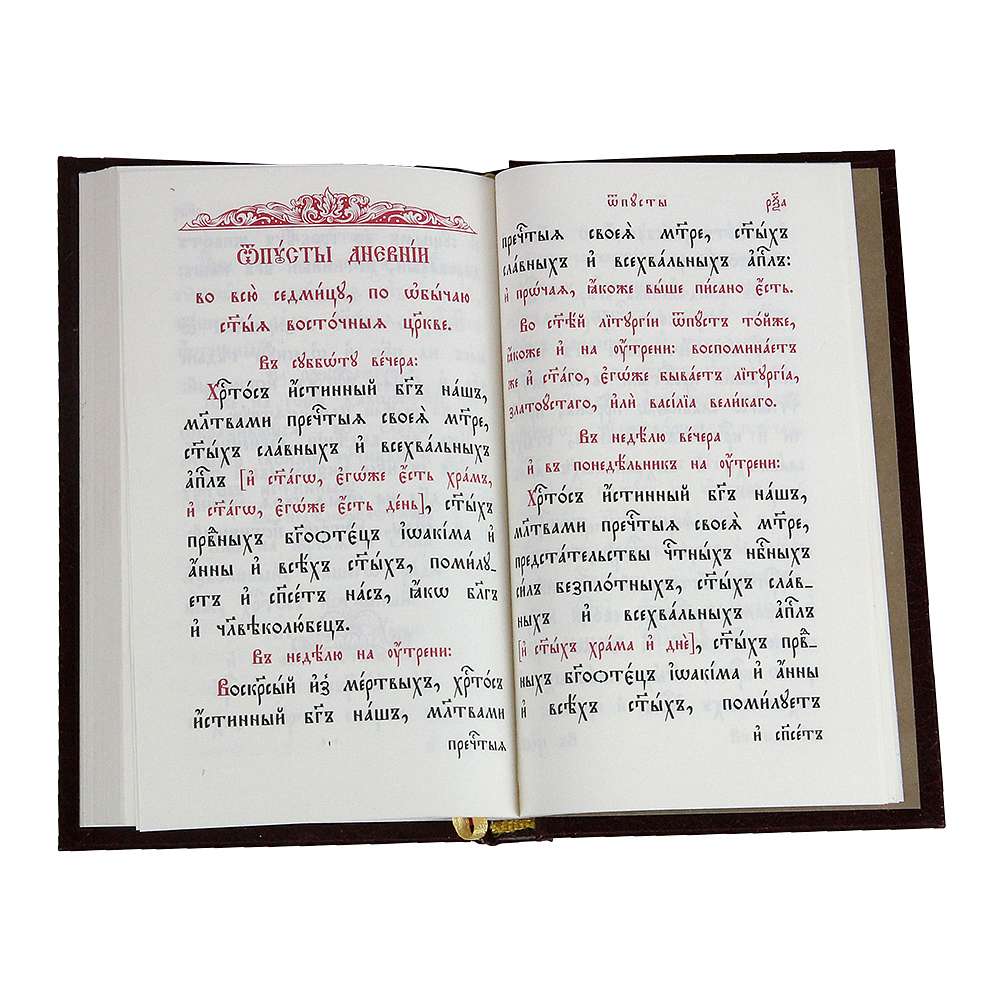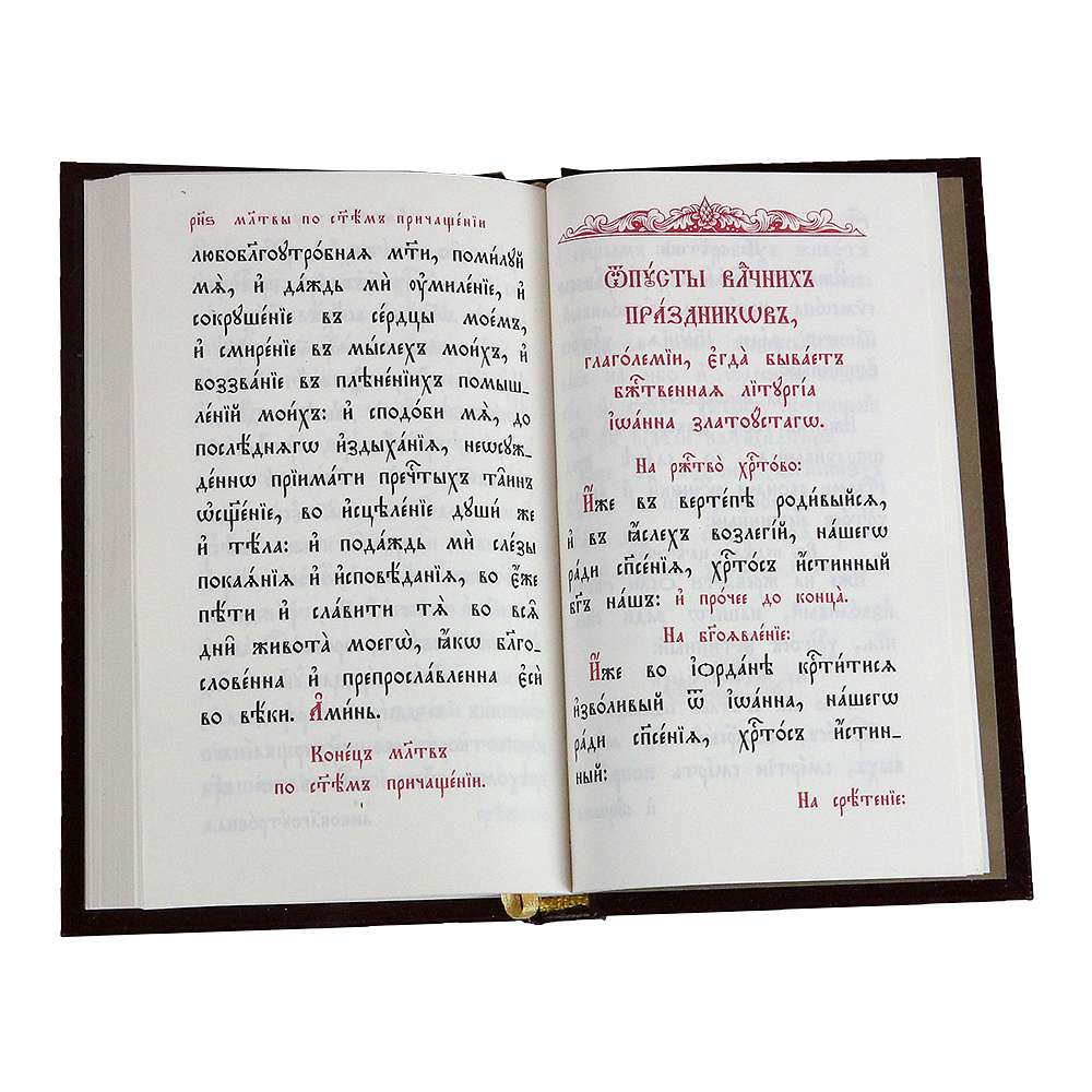 В таком же формате выпущены отдельными книгами Последование Вечерни и Утрени, Божественная Литургия святого Василия Великого и Божественная Литургия Преждеосвященных.
