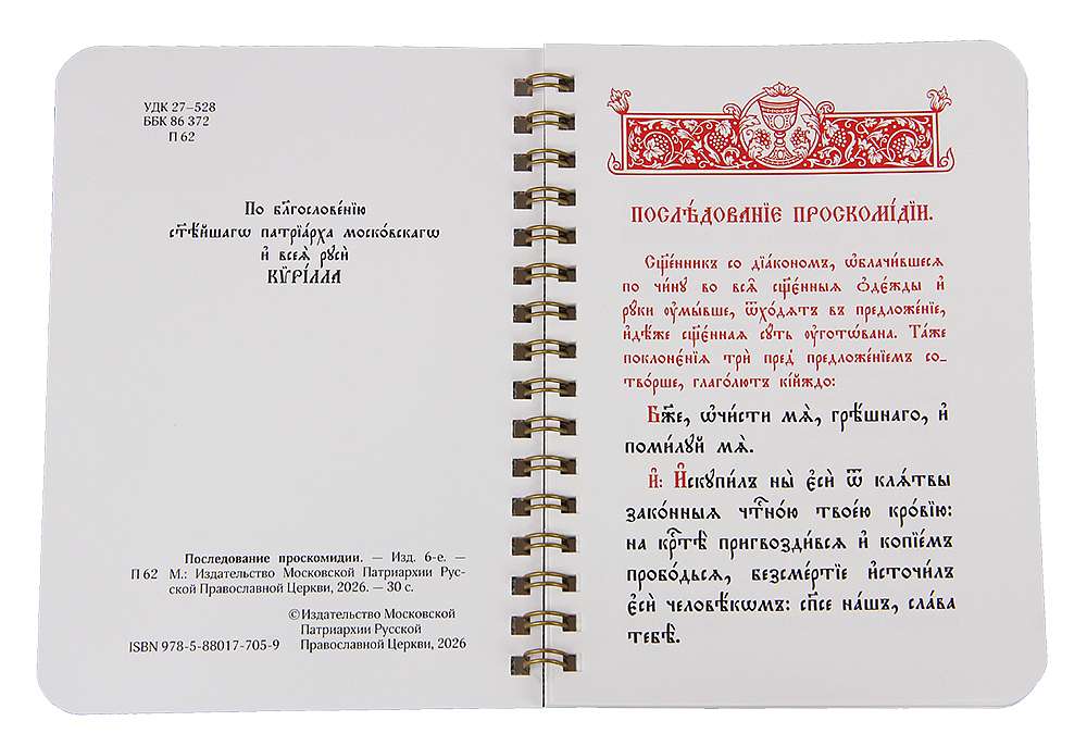 Издательство Московской Патриархии выпустило в свет «Последование проскомидии», выполненное в виде блокнота на металлической пружине. Принцип блокнота позволяет полностью раскрыть книжку и не заботиться всё время совершения проскомидии о том, чтобы книжка не закрывалась, как это обычно бывает с любым служебником в твёрдом переплете.