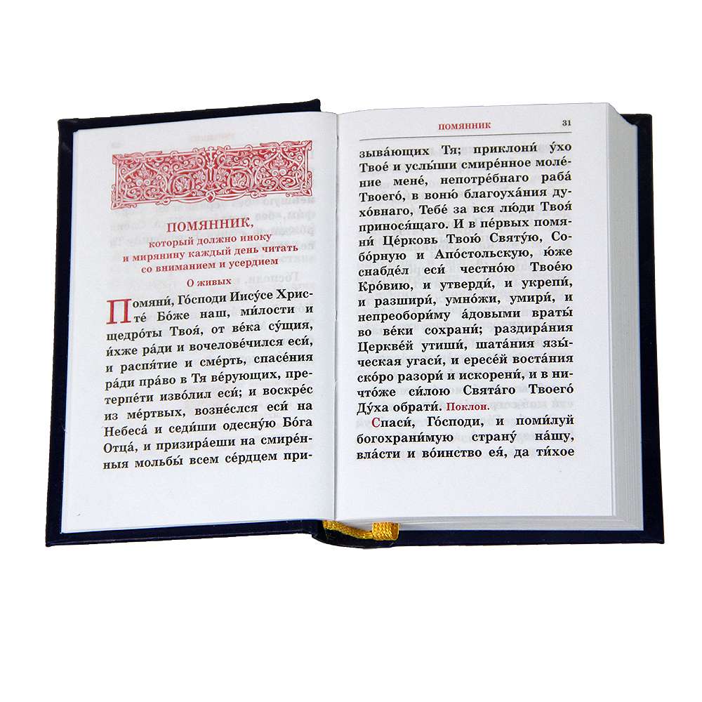 В новом издании Помянник вынесен в самостоятельный раздел, в соответствии с традиционным расположением его в синодальных молитвословах и канонниках. Публикация Помянника в составе утренних молитв, ставшая регулярной в молитвословах гражданской печати за последние десятилетия, не оправдывает себя: такая обширная вставка разрушает стройность последования. Кроме того, утром у молящегося не всегда есть время совершить поминовение по пространному помяннику, и на утреннем правиле обычно читаются краткие молитвы о живых и усопших.