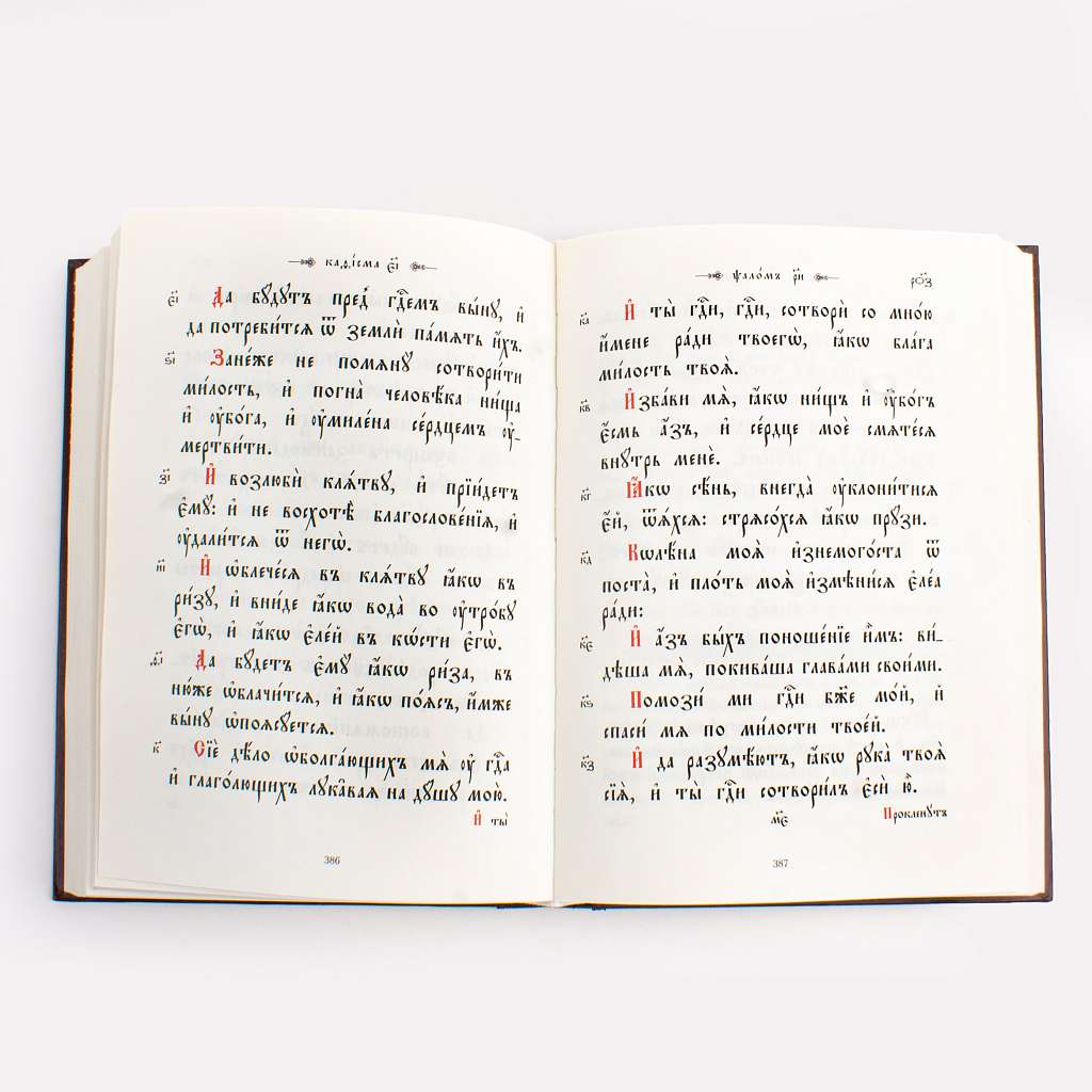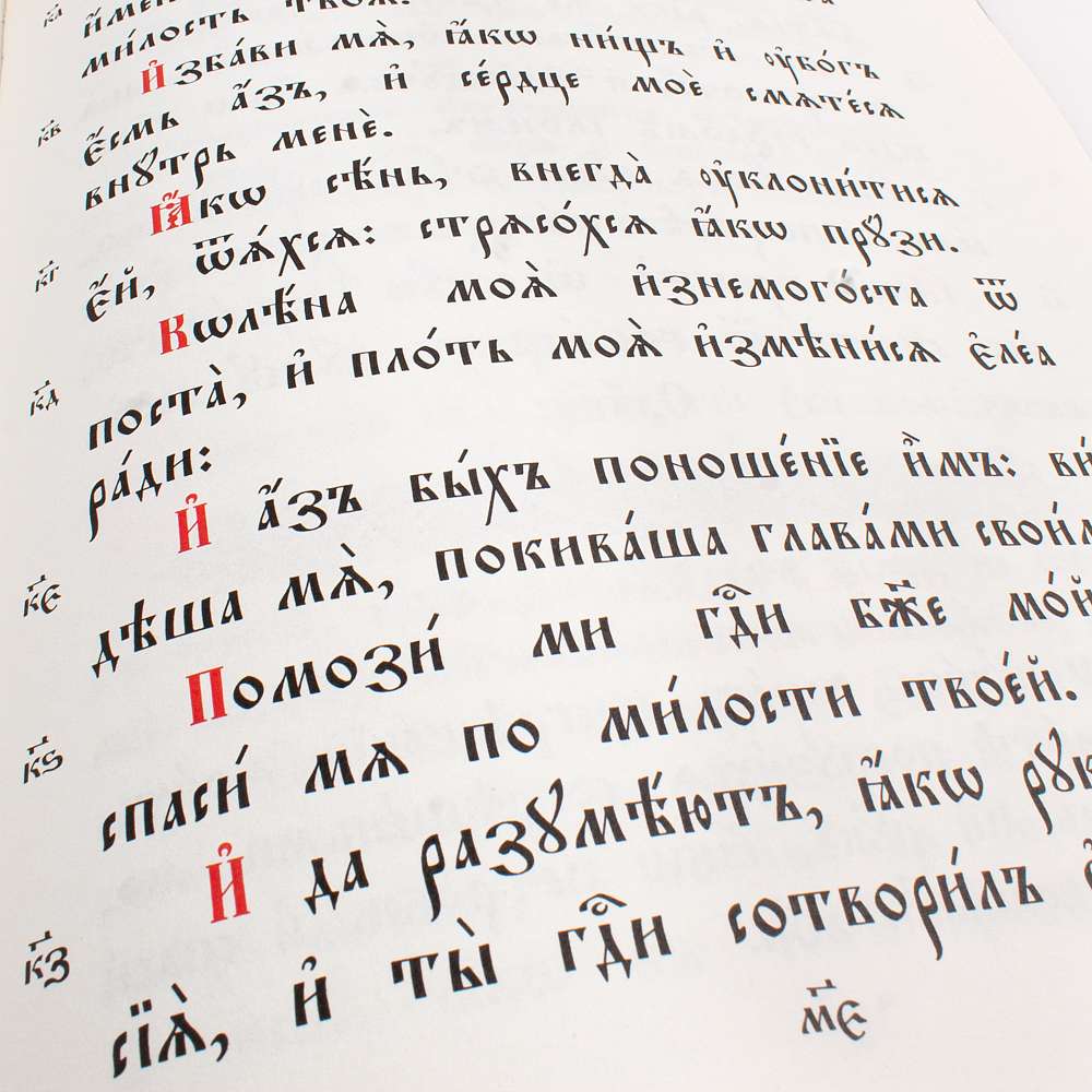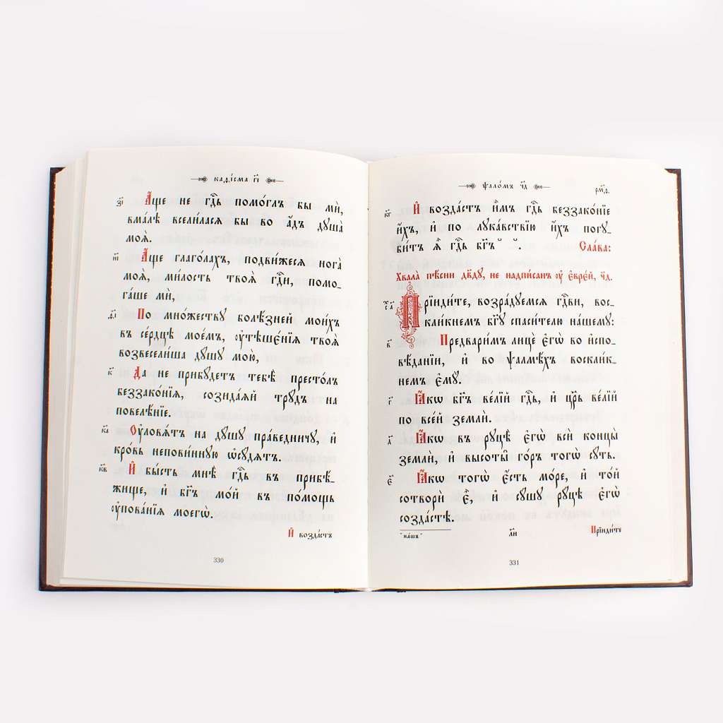 Псалтирь, напечатанная в два цвета крупным церковно-славянским шрифтом. Издание большого аналойного формата, который подходит как для использования на клиросе в храме, так и для домашнего молитвенного чтения. Текст Псалтири украшен оригинальными буквицами и орнаментами. Использован твердый переплет с тиснением золотой фольгой, качественная офсетная бумага.