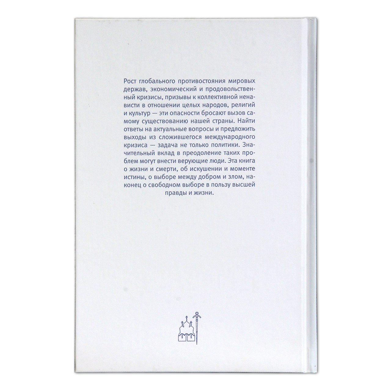 Рост глобального противостояния мировых держав, экономический и продовольственный кризисы, призывы к коллективной ненависти в отношении целых народов, религий и культур — эти опасности бросают вызов самому существованию нашей страны. Найти ответы на актуальные вопросы и предложить выходы из сложившегося международного кризиса — задача не только политики. Значительный вклад в преодоление таких проблем могут внести верующие люди. Эта книга о жизни и смерти, об искушении и моменте истины, о выборе между добром и злом, наконец о свободном выборе в пользу высшей правды и жизни.