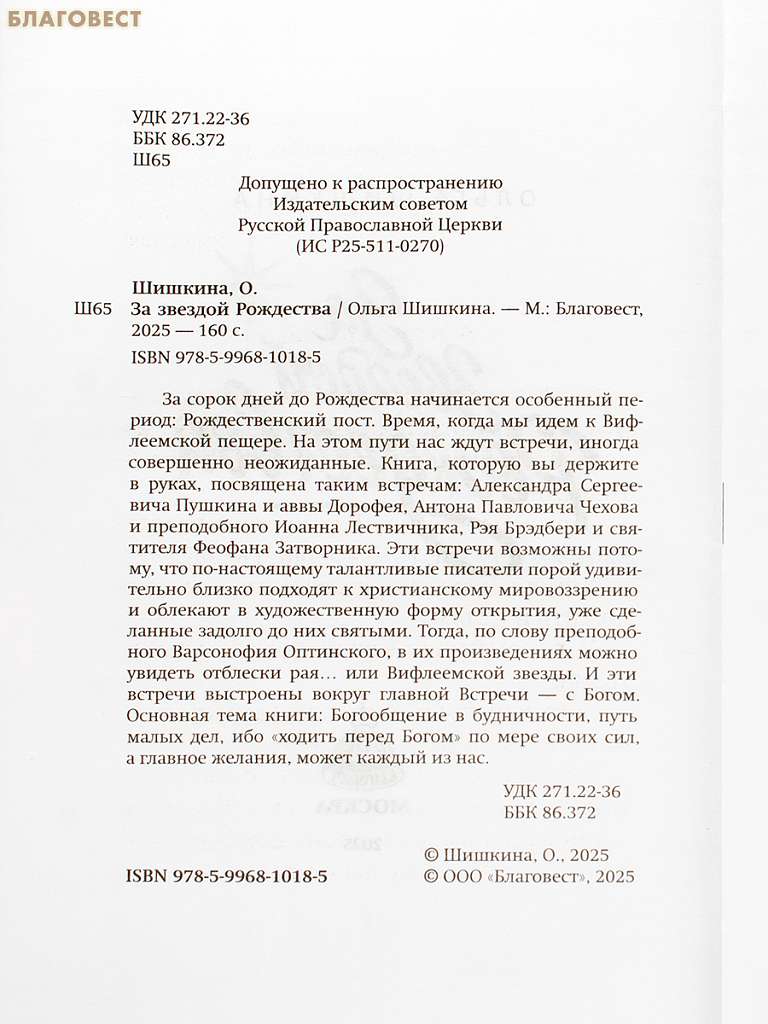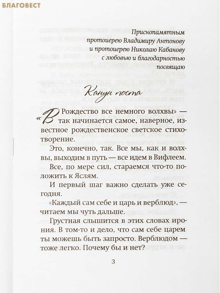 За сорок дней до Рождества начинается особенный период: Рождественский пост. Время, когда мы идем к Вифлеемской пещере. На этом пути нас ждут встречи, иногда совершенно неожиданные. Книга, которую вы держите в руках, посвящена таким встречам: Александра Сергеевича Пушкина и аввы Дорофея, Антона Павловича Чехова и преподобного Иоанна Лествичника, Рэя Брэдбери и святителя Феофана Затворника. Эти встречи возможны потому, что по-настоящему талантливые писатели порой удивительно близко подходят к христианскому мировоззрению и облекают в художественную форму открытия, уже сделанные задолго до них святыми. Тогда, по слову преподобного Варсонофия Оптинского, в их произведениях можно увидеть отблески рая… или Вифлеемской звезды. И эти встречи выстроены вокруг главной Встречи — с Богом.