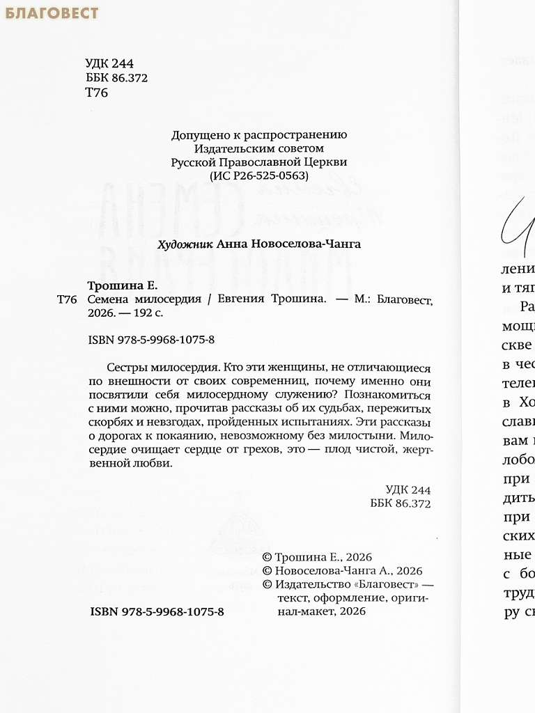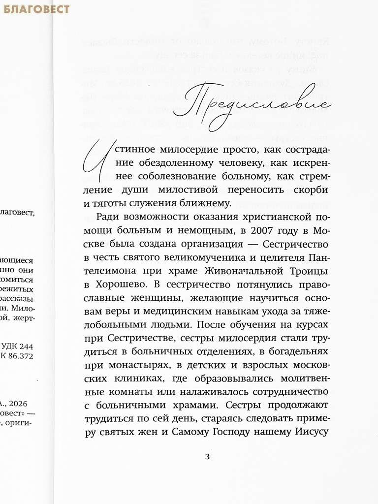 Сестры милосердия. Кто эти женщины, не отличающиеся по внешности от своих современниц, почему именно они посвятили себя милосердному служению? Познакомиться с ними можно, прочитав рассказы об их судьбах, пережитых скорбях и невзгодах, пройденных испытаниях. Эти рассказы — о дорогах к покаянию, невозможному без милостыни. Милосердие очищает сердце от грехов, это — плод чистой, жертвенной любви.